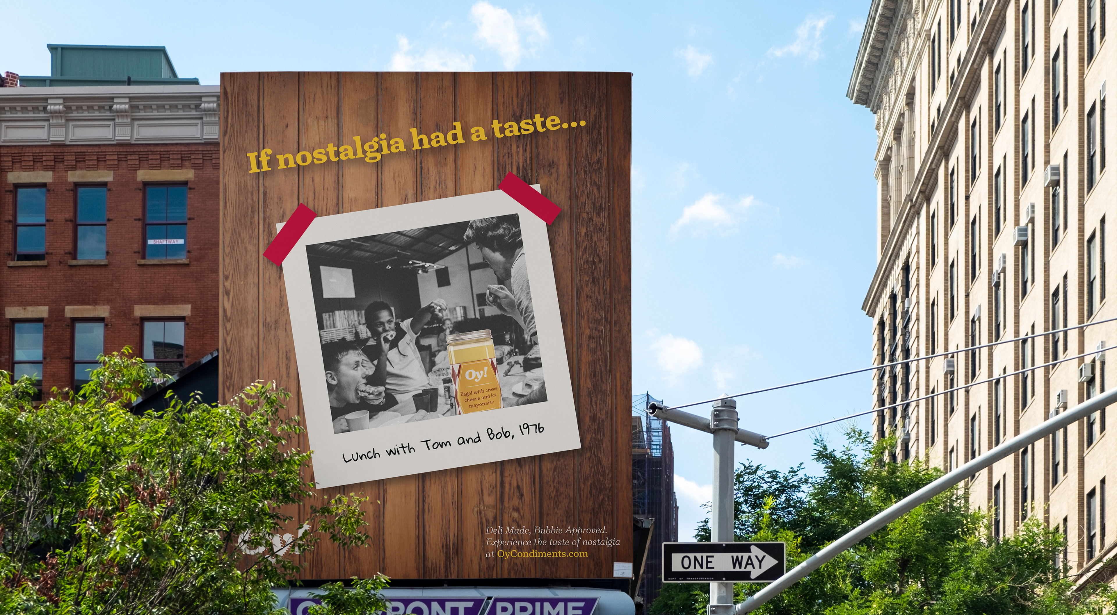 If nostalgia had a taste, it would be Oy! These sauces bottle up the memories, feelings, and places of nostalgia for everyone who tastes it. As Jews, our fondest memories can be found among family and food. This concept takes the feeling of the nostalgia from Jewish delis and puts a vision to the memories. With just a taste of Oy, the nostalgia puts you back in line at the deli counter.